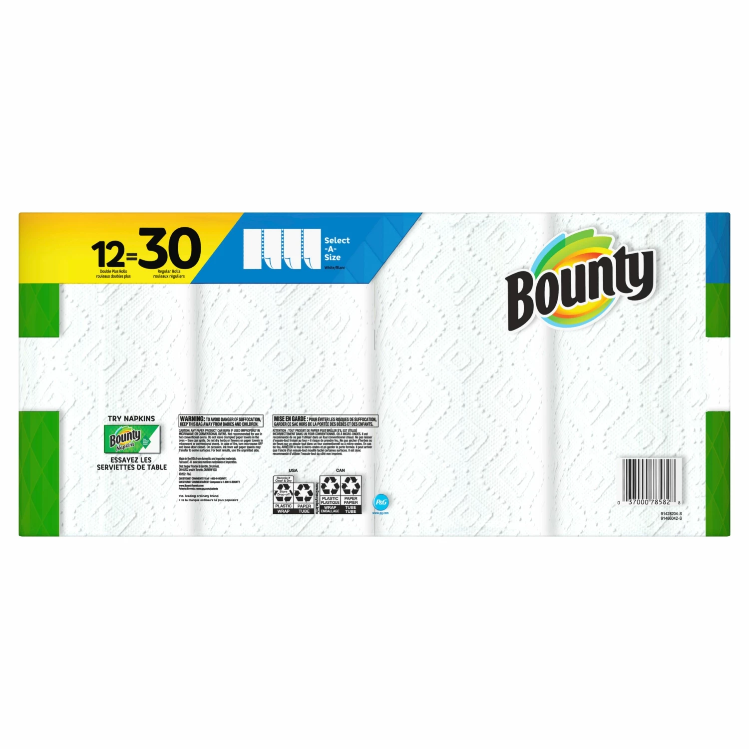 - Pack contains 12 double plus rolls of white select-A-size paper towels