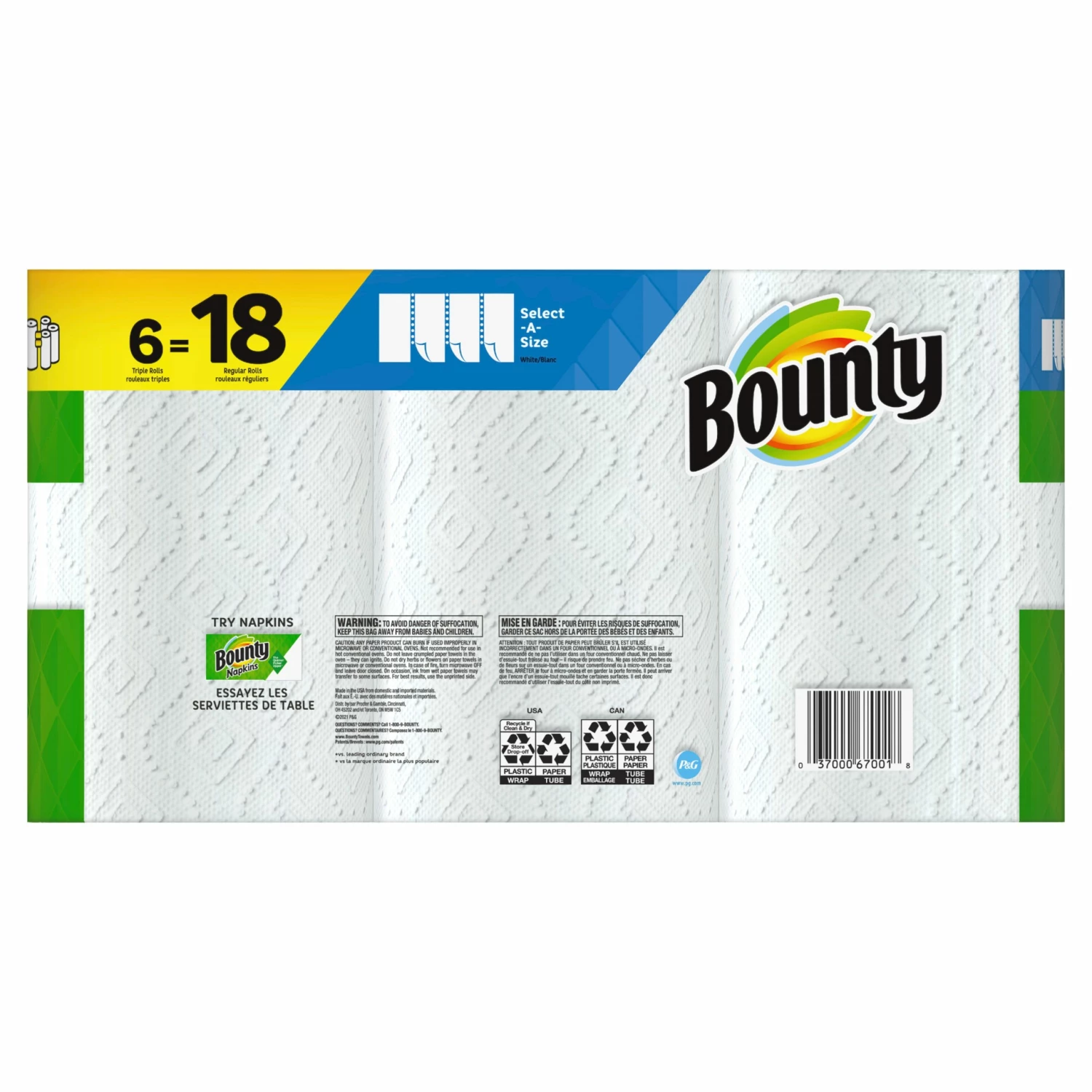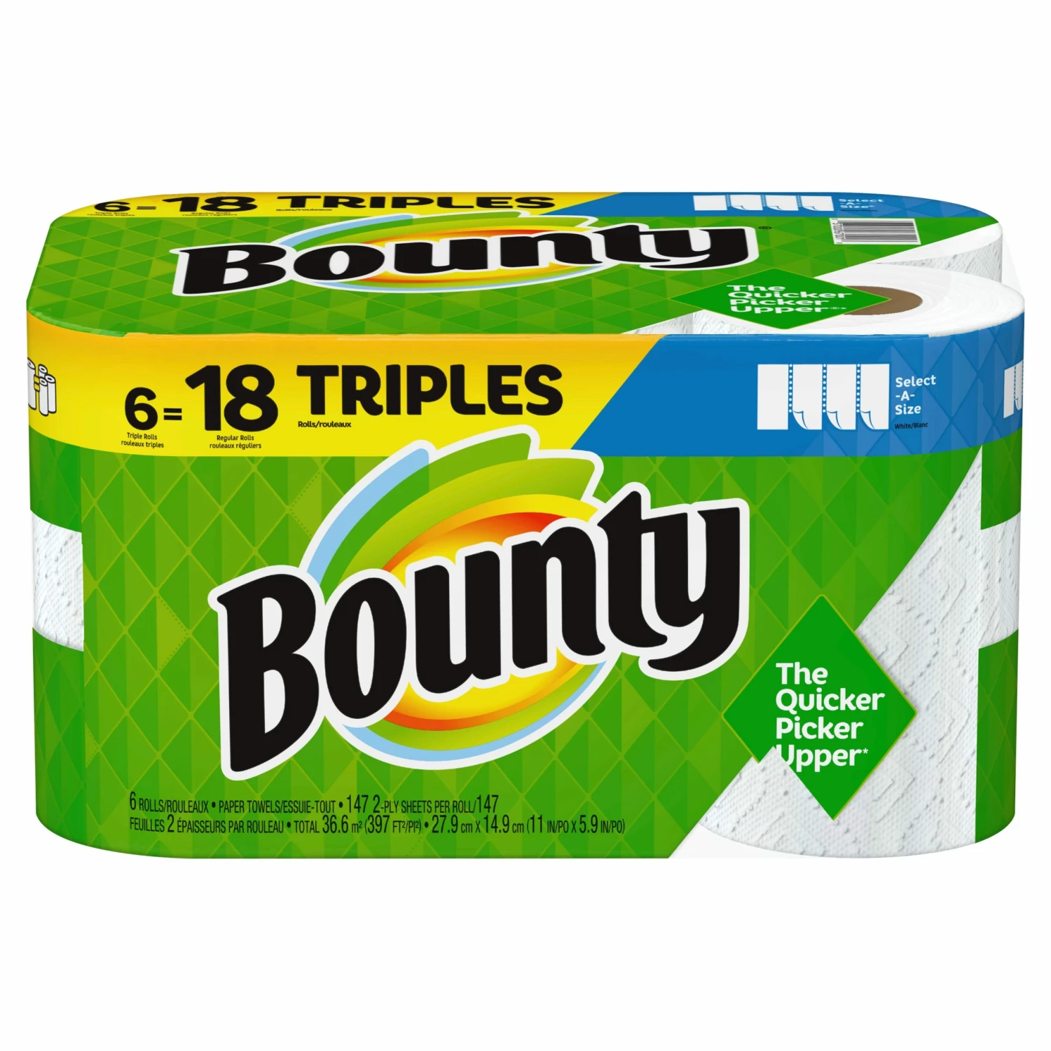 - Pack contains 6 triple rolls of white select-A-size paper towels