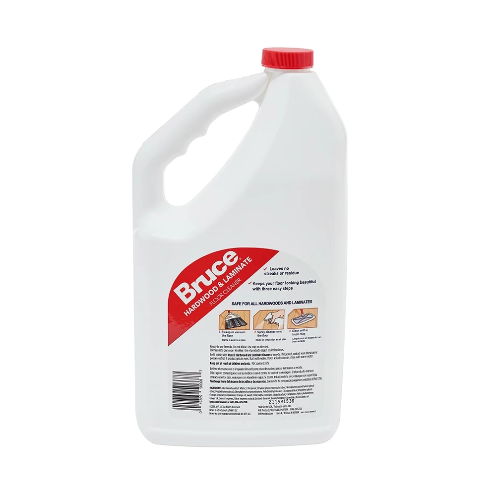 Bruce hardwood and laminate floor cleaner is a unique cleaner that lifts soil from the surface of the urethane finish without leaving a film. Its ready-to-use formula is great for spot and routine cleaning of all no-wax hardwood and laminate floors. No rinsing required and it leaves no dulling film.