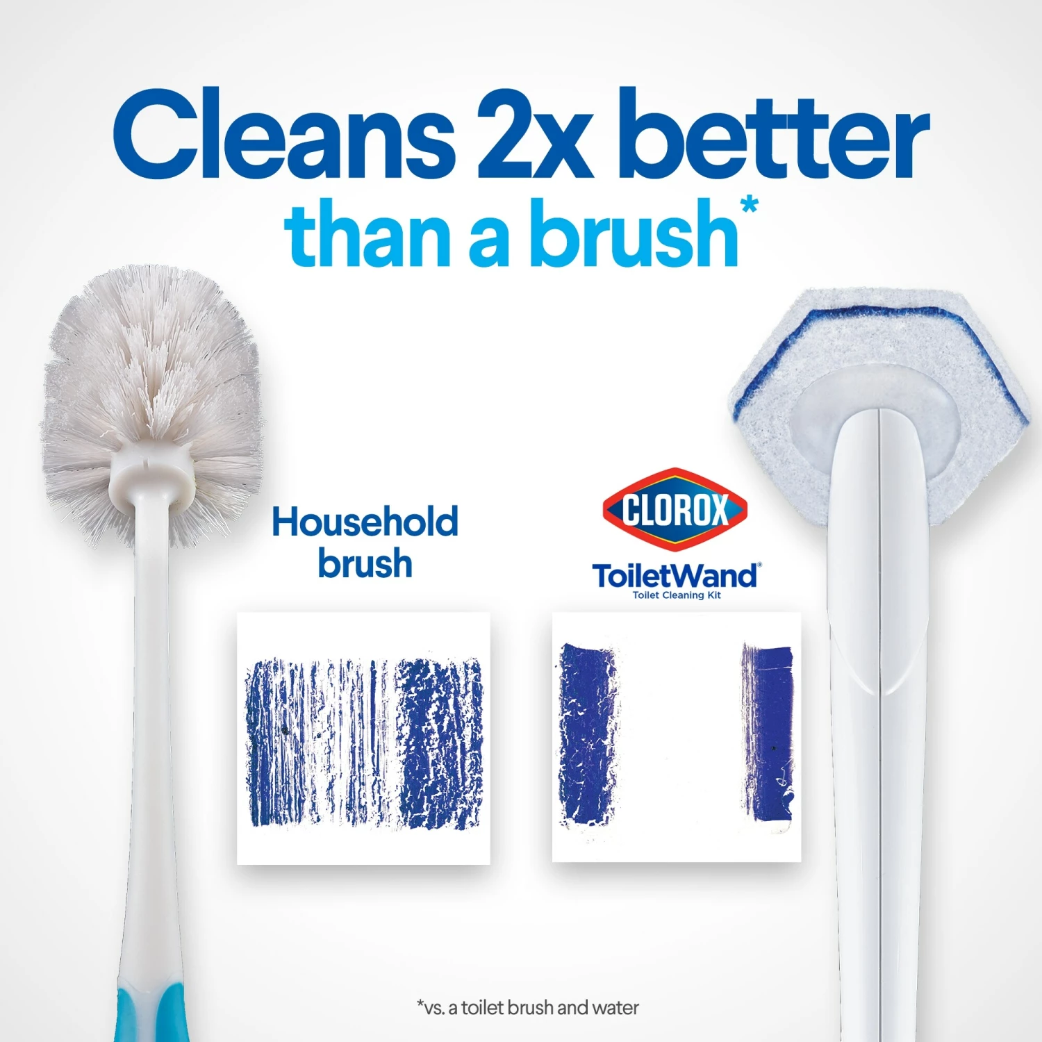 Clorox ToiletWand Disposable Toilet Cleaning System is a convenient way to a quick clean toilet. The starter kit contains one wand, 6 refills and 1 storage caddy to get you started on a deeper clean. Each disposable head is preloaded with Clorox Cleaner with 4x the powerful scrubbing action to clean tough stains, kill germs, remove rust, calcium and limescale while it disinfects and deodorizes with ease. Based on comparative lab tests, the toilet wand cleans better than a brush. The sponge like cleaning head is shaped so that you can get into every nook and cranny needing cleaning and germ control while killing 99.9% of germs like staphylococcus aureus, salmonella enterica, rhinovirus type 37 and influenza A. This all in one system is designed so that you get a brand new cleaning sponge every time you clean without having to touch a yucky brush. Just click your way to a cleaner toilet with the Clorox ToiletWand Disposable Toilet Cleaning Starter Kit.