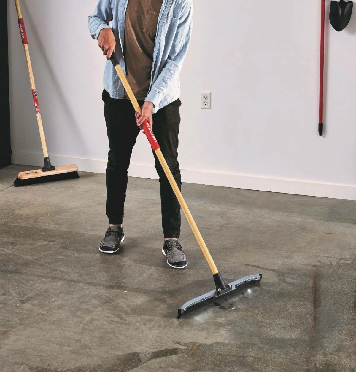 The CRAFTSMAN curved floor squeegee featuring unbreakable connector will be your go to squeegee. It features dual moss foam curved blades that are great for uneven and smooth surfaces. The dual blades push liquid easily and quickly dries any surface. Great for cleaning garage floors, removing standing water on patios and decks, removing slush, snow and water in winter months and so much more.