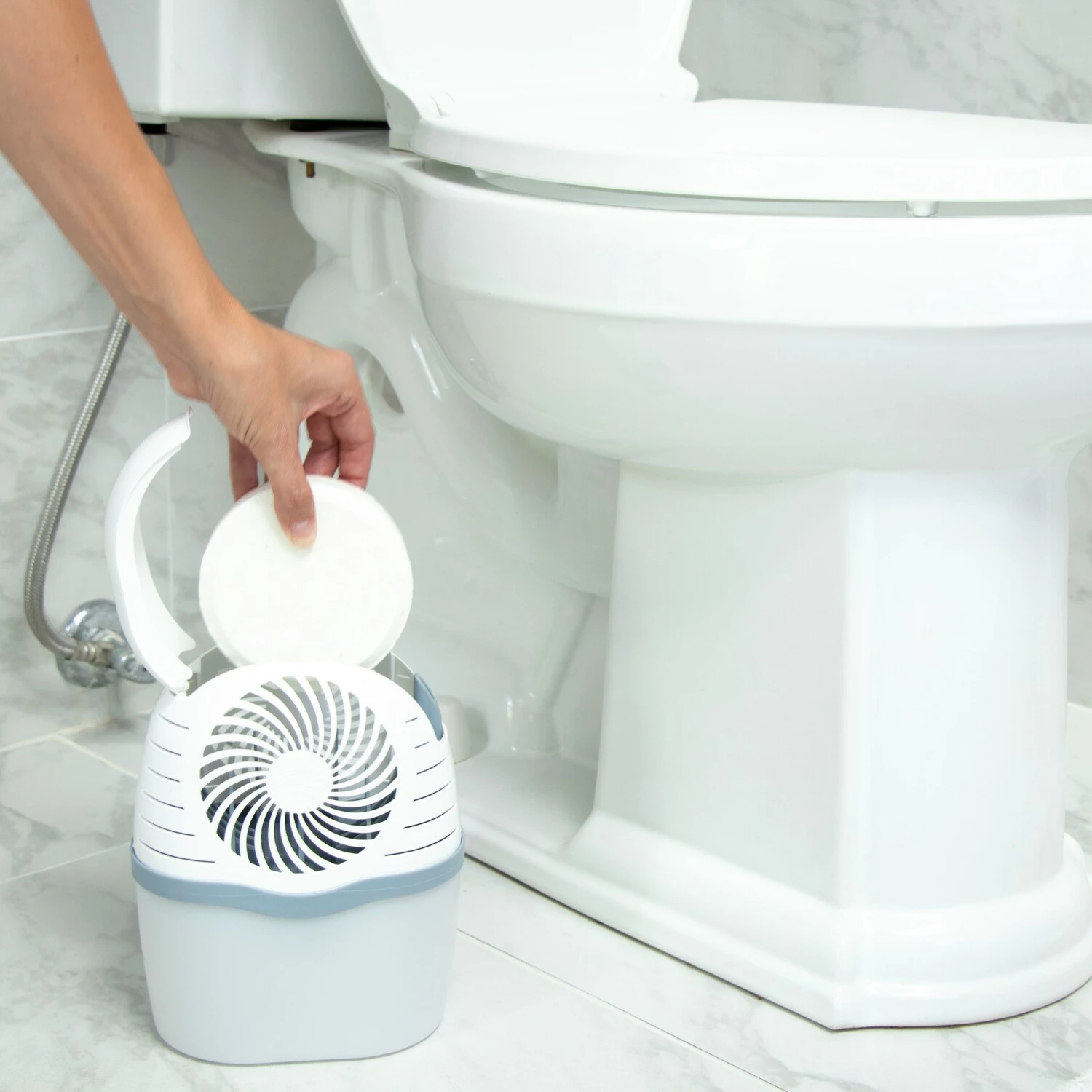 - Simply insert an unwrapped tab into the top container. Without using electricity, the drop-in tab will collect moisture out of the air and deposit it into the bottom container for septic-safe toilet disposal