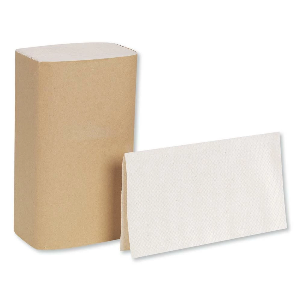 Universal folded paper towels are an essential supply for a wide range of professional, away-from-home facilities. They are typically dispensed from ‘universal folded towel’ dispensers that are mounted on the wall and available from towel manufacturers. In smaller business environments and restrooms, folded towels are sometimes ‘set out’ in an open tray or simply stacked on the side of a sink or work space. GP PRO is a division of Georgia-Pacific Consumer Products. We deliver well-designed, durable and easy-to-maintain professional solutions to meet the handwashing and cleaning needs for a range of business applications. Single-Fold—9-1/4″ x 10-1/4″. 250 per pack. Towel/Wipe Type: Single-Fold; Application: General Purpose; Material(s): Paper; Number of Plies: 1.