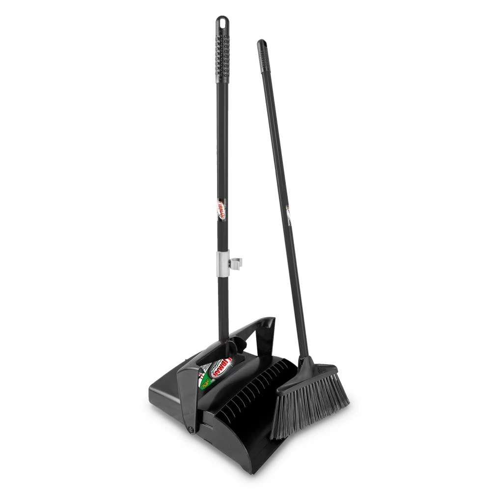 Make mobile cleaning easy with the Libman Lobby Dust Pan and Broom set. The large-capacity dust pan features teeth to remove debris from the broom fibers and a simple handle clip for easy storage when not in use. The 10-in wide sweeping width and 3.75-in fibers made from recycled PET gives the user excellent floor coverage and can be used on any surface. The 38-in broom stores neatly inside the dust pan and both are equipped with convenient hanger holes for easy storage.