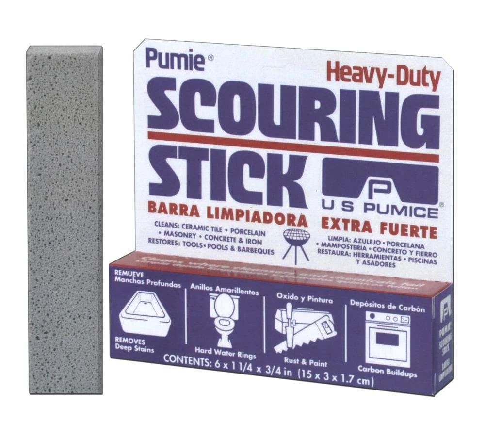 Cleans where chemicals fail. Pumie works through gentle abrasive action. Takes over where other abrasive cleaning aids leave off. Scours away mineral deposits, rust, stains and scale from sinks, tubs and showers. Removes unsightly toilet rings. Cleans baked-on food, grease and carbon buildup in ovens, on grills and iron cookware. A 100% pumice product. Works through gentle abrasive action. Won’t harm hard surfaces. Safe for skin. Safe to use and store around children and pets.