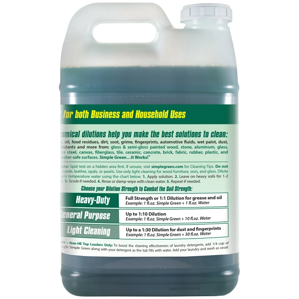 Simple Green All-Purpose Cleaner is a powerful cleaner and degreaser designed for effective and environmentally safer use on all washable surfaces. The biodegradable formula easily removes tough dirt and grime without chemicals that can harm people and the environment. The concentrated formula provides up to 30 times the cleaning value. Use it full-strength for heavy messes or easily dilute it with water for daily cleaning. Removes built-up dirt, grease, food spills, ink, pet stains and other tough grime indoors and out. For use on floors, carpets, walls, countertops, appliances, furniture, fabric, tools and more, this versatile all-purpose cleaner can easily replace a cupboard full of harsh cleaners, detergents, degreasers and laundry pre-soaks, making clean-up simple and safer. This formula is readily biodegradable per OECD 301D. It’s backed by our 100% money-back guarantee.