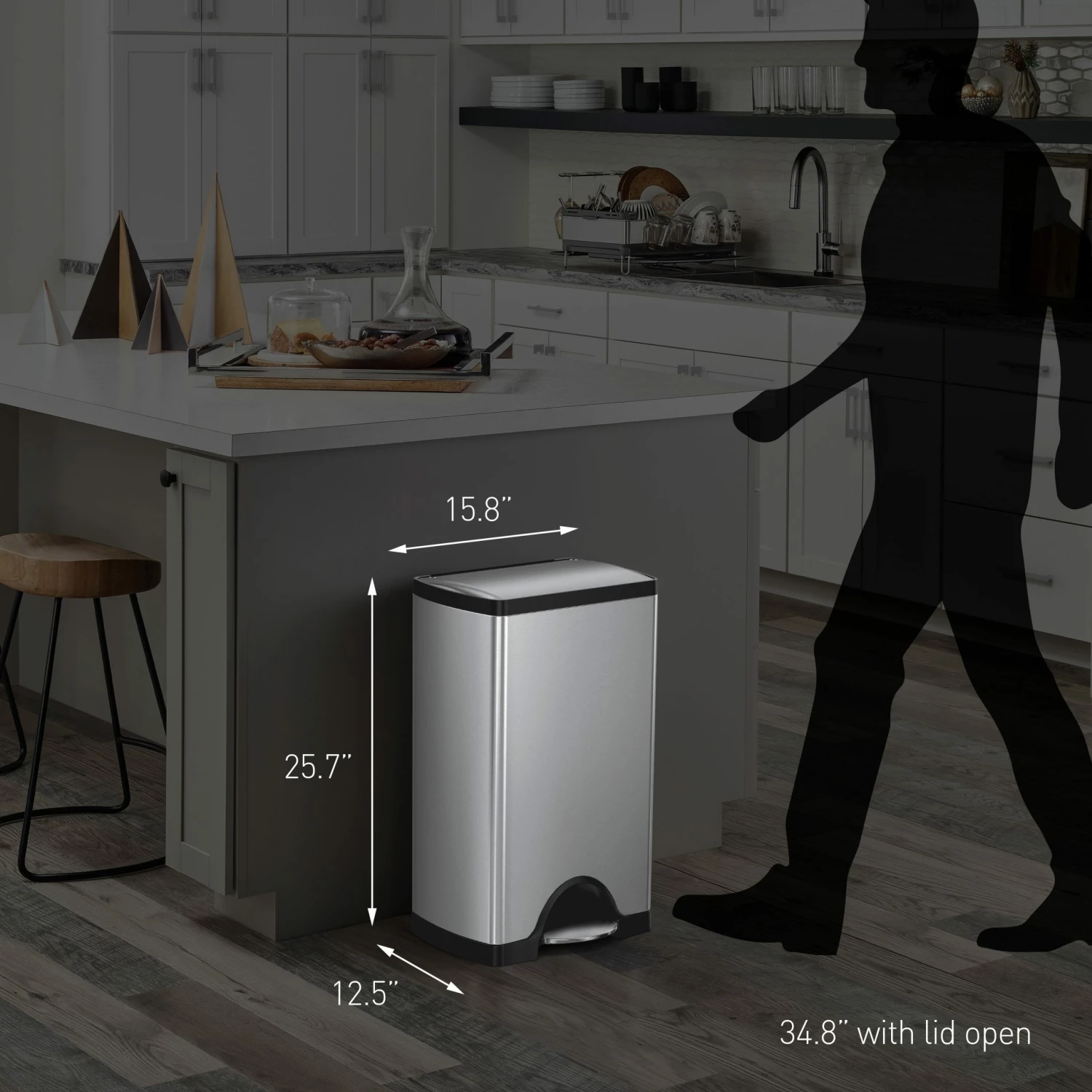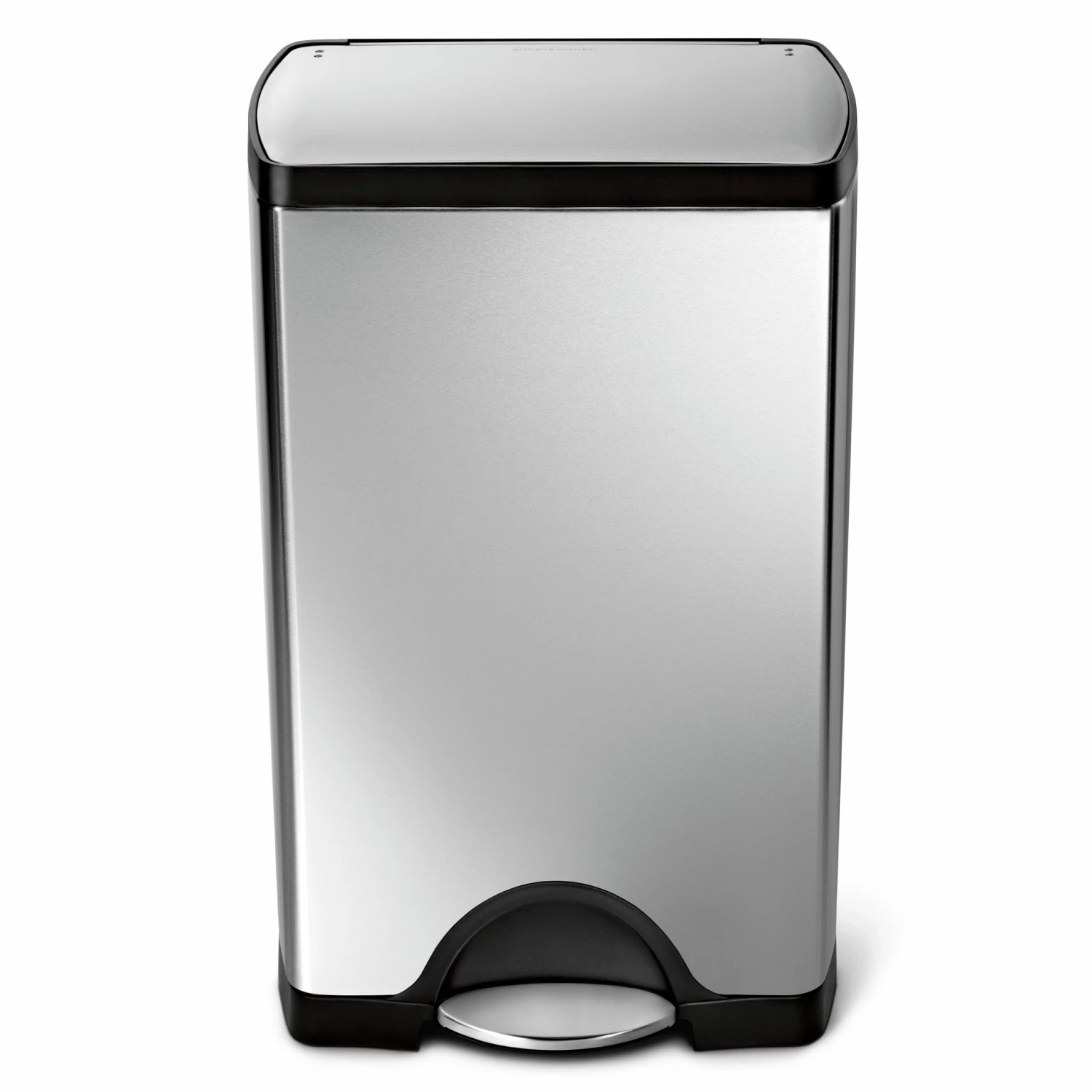 The simplehuman classic rectangular step can has an internal hinge and a space-efficient shape so you can place it directly against the wall and out of the way. The strong steel pedal is designed to last, and patented lid shox® technology ensures a smooth, silent close every time. The code J liner, also available at Lowe’s (item # 703666), fits this can perfectly — no bunching or slipping for a cleaner trash experience.