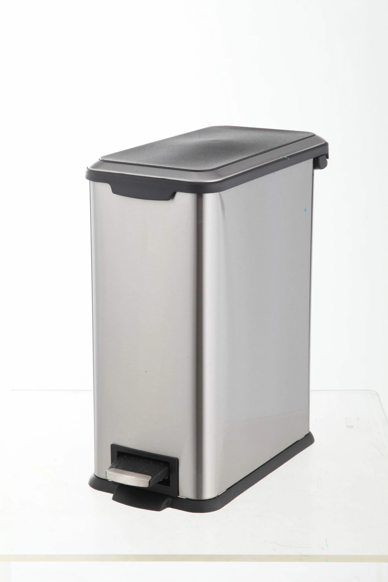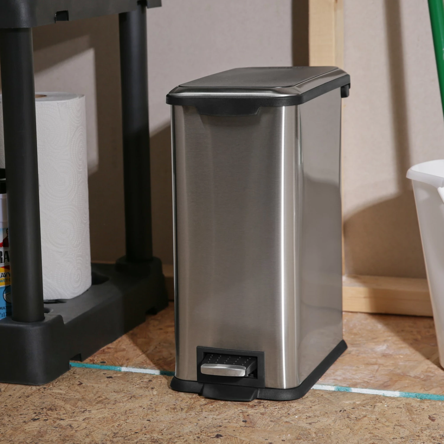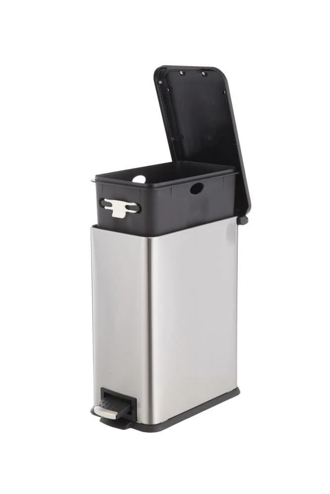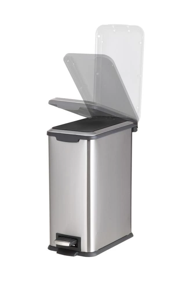 Perfect for storing trash in your kitchen, garage or elsewhere in your home. The stainless steel body looks great and is functional with finger print resistance. Features include a stay open lid, slow-close lid and a rubber band for bag tuck.