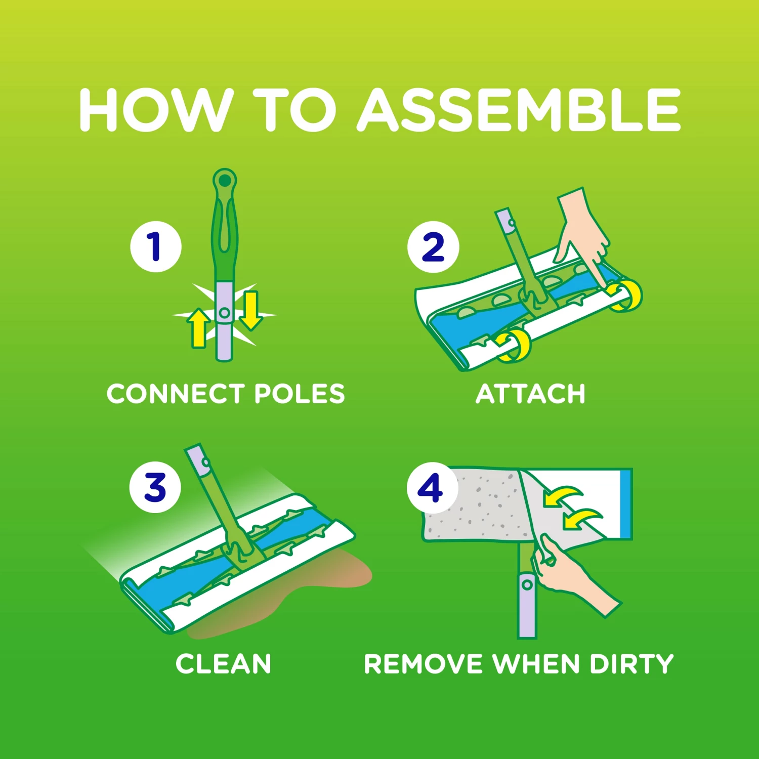 - Starter kit includes 1 sweeper, 8 XL dry sweeping cloths, 2 XL wet mopping pads