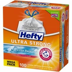 Hefty Trash Bags Hefty Ultra Strong 100-Pack 13-Gallon Clean Burst White Plastic Kitchen Trash Bag